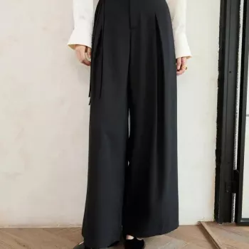 High Waist Coffee Wide Leg Woolen Pants for Women